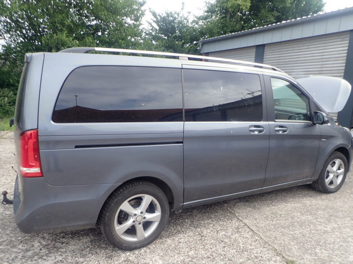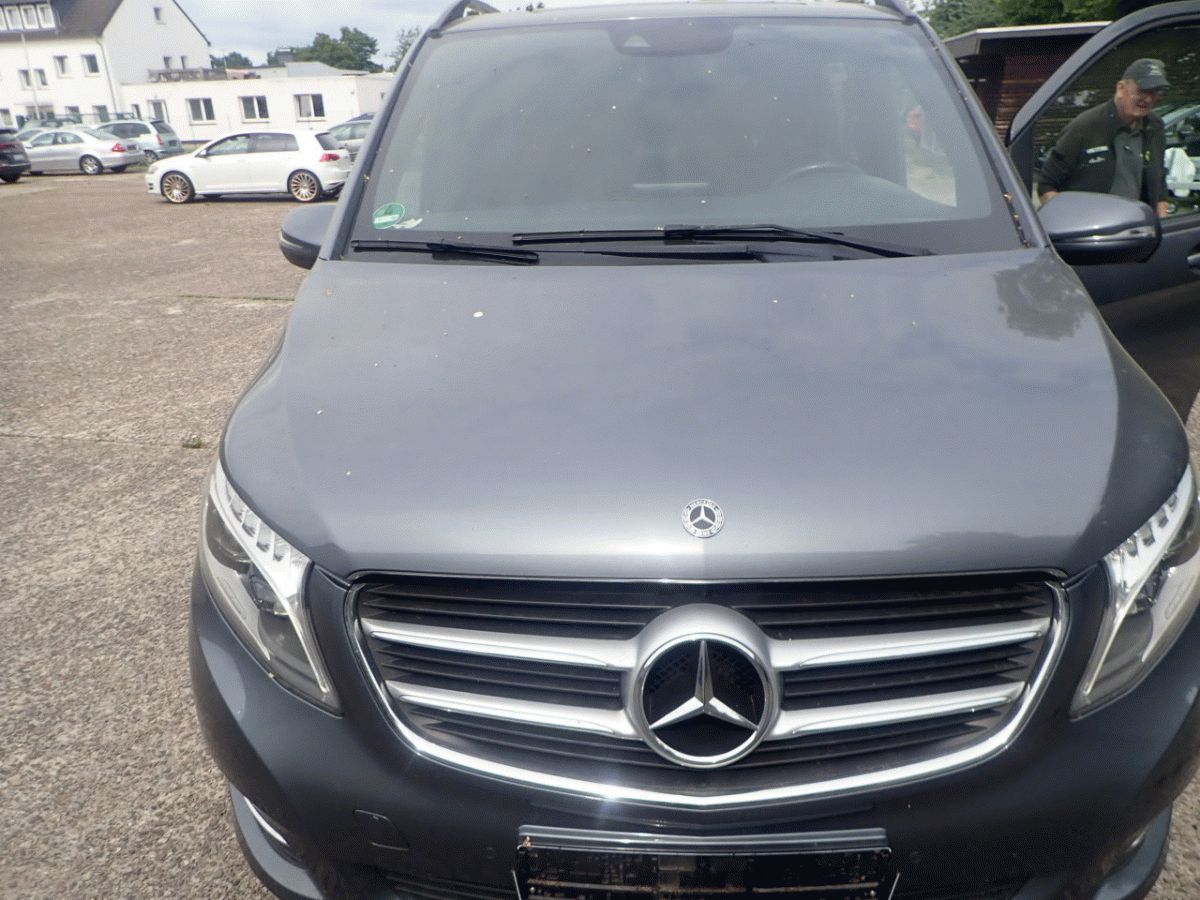Mercedes Benz V-Klasse, V 250, ehem. Kennzeichen: OL-Z 7766, EZ: 11.08.2017, 140 KW, 2143 ccm, Diesel, Euro 6, Fahrgestellnr.: WDF44781313339935, feste Anhängerkupplung, Einparkhilfe hinten, Stoßstange hinten mehrfach beschädigt, grau, Avantgard-Ausstattung, TÜV 12/25, Langversion, Allrad, Leichtmetallfelgen mit Anfahrschäden, diverse Beulen und Kratzer am gesamten Fahrzeug, Privacy-Verglasung hinten, 6-Sitzer, Rückfahrkamera, Parkhilfe vorne, letzter Ölwechsel bei 131.457 km, Ledersitze, Pilotsitze, Schiebetür rechts und links, Wurzelholzeinlagen am Armaturenbrett und in den Armlehnen auf der zweiten und dritten Sitzreihe, z. T. beschädigt, verkratzt, 161.655 km, Tempomat, Automatik, Schaltwippen, Multifunktionslederlenkrad, Klimaanlage, Fahrstufenauswahl, Navigation, Spurhalte- und Bergabfahrassistent, elektrische Fensterheber vorne und hinten, Sitzheizung vorne, dunkler Dachhimmel, sehr schlechter Pflegezustand, Beule und links Fahrertür, großflächige Kratzer Stoßfänger vorne rechts, Die ZBII liegt nicht vor, wird neu aufgeboten und es ist mit Wartezeiten zu rechnen, 1313/ECY